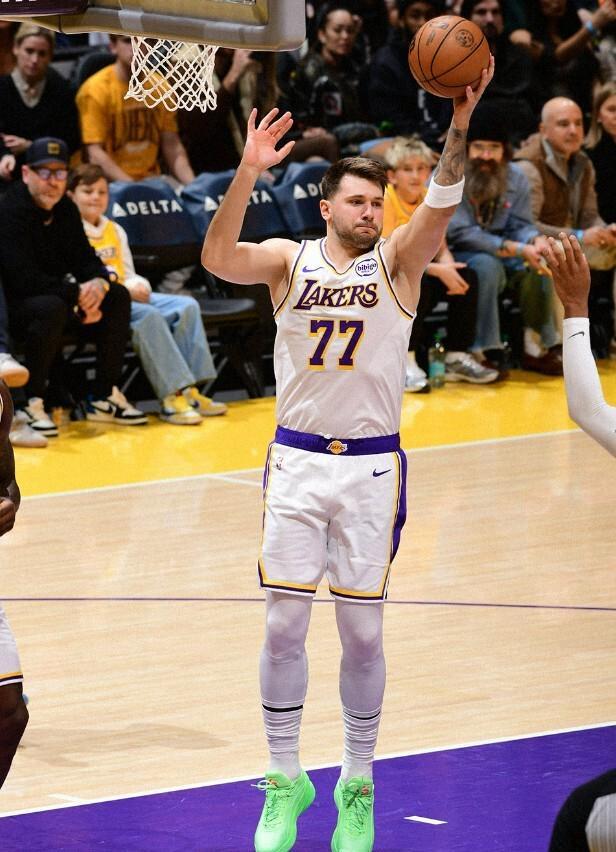 湖人(20-10):东契奇34分5篮板7助攻,詹姆斯24分5助攻,艾顿11分11篮板,八村塁12分,拉拉威亚11分,史密斯21分。